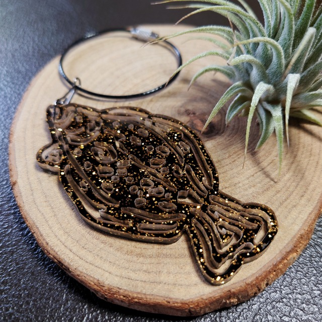 アクリルキーホルダー【ヒラメ】黒金ラメ
