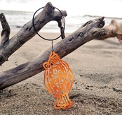 ヒラメのアクリルキーホルダー べっ甲柄(薄茶)です。